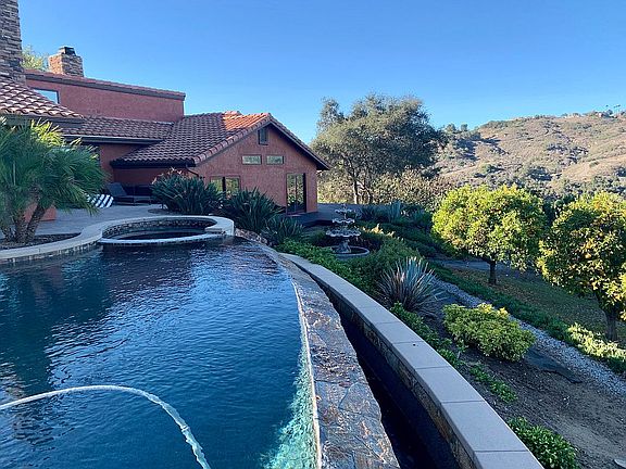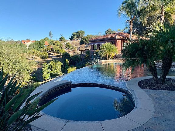 View home fully fenced on 2 acres with Infiniti edge pool and spa, beautiful landscaping, wrap around Trex deck and tons of outdoor living paver patio space. Family orchard with over 60 orange trees and old California oaks as well as tons of privacy trees surrounding the property. Granny flat with full bathroom, kitchenette and deck. Owned solar, Pella windows and doors, hardwood floors in main living areas and hardwood tile flooring in bedroom areas.