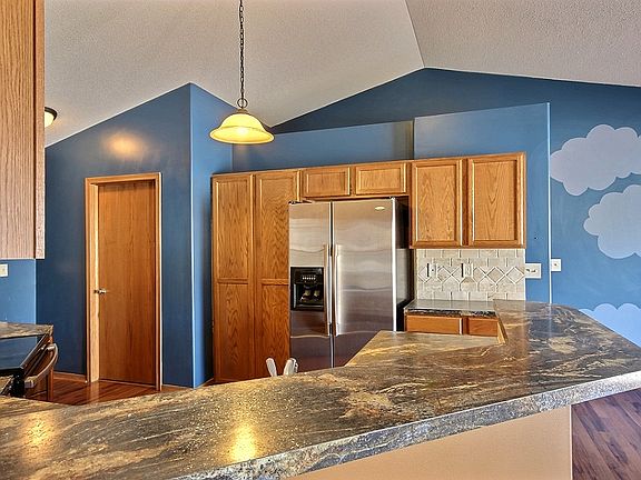 Open, Split 6 Bedroom Floor Plan. Front Room has Wood Burning Fireplace w/Gas Starter. Kitchen includes Breakfast Bar, Hidden Walk in Pantry and all Appliances stay. Large Main Floor Laundry. Master Bedroom has Coffered Ceiling, Walk in Closet with Master Bath that includes Dual Sinks, Corner Tub and 4' Shower. Basement was recently Finished to include 3 additional Bedrooms, Office and Rec Room. Basement Bathroom is Roughed In.