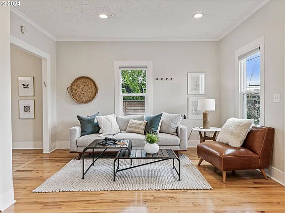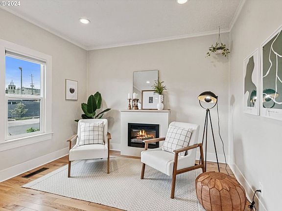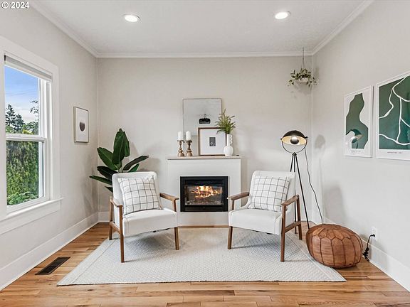 Exceptional SE starter home, circa 1906. Remodeled with designer touches and modern sensibilities. Refinished hardwoods and wood floors throughout. Charming and bright living room, formal dining room with new lighting. Remodeled chef's kitchen with solid stone surfaces, gas cooking and stainless appliances. Two gracious bedrooms, lovely bathroom, separate laundry room and newly converted mudroom off kitchen, perfect for storage and wet shoes! Heated art studio / office (separate structure) in backyard offers extra space to entertain. Gas furnace and central AC. Newer vinyl windows and radon mitigation system. Mere moments to coffee shops, fun dining and downtown Foster-Powell. So much to love about this home! [Home Energy Score = 4. HES Report at https://rpt.greenbuildingregistry.com/hes/OR10051197]
