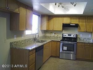 Beautiful, liveable 4 bedroom, remodel. New flooring, 20 inch porcelain tile on the diagonal (that looks like marble) adds to the open feel, as well as new carpet and laminate. New baths: tile showers with glass tile cut-outs, vanities with granite, new faucets and undermount sinks. Granite kitchen counters with new appliances. Nicely landscaped with a small island of grass in the backyard and desert front. No popcorn ceilings here!!