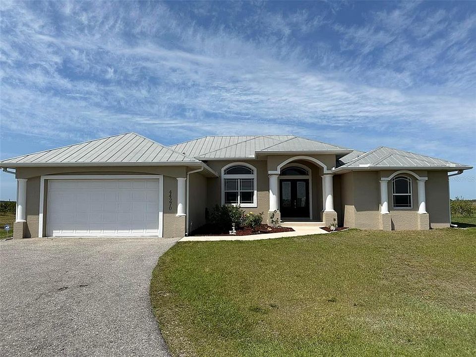 Welcome to your dream home on 10 acres of serene agricultural land! Fresh paint!!! This stunning 4-bedroom, 3-bathroom residence with a 2-car garage and a thriving orange grove is a true gem. Custom-built to perfection, this property offers a multitude of desirable features that will surely capture your heart. As you step through the elegant double door entry, you'll be greeted by the grandeur of tall ceilings and a double tray ceiling in the living room, creating an open and inviting atmosphere. The entire home boasts beautiful tile flooring, enhancing the sense of spaciousness and easy maintenance. The thoughtful layout of this home includes a welcoming foyer and a formal dining area, perfect for hosting memorable gatherings. The spacious kitchen is a cook's delight, adorned with stainless steel appliances and gleaming granite countertops, making meal preparation a joy. The well-planned split floor plan ensures privacy and convenience, with the master suite situated on one side and three guest bedrooms on the other. The guest bedrooms are equally spacious and provide ample closet space, ensuring that everyone in the family enjoys comfort and privacy. The third bathroom conveniently adjoins the lanai, making it ideal for use as a future pool bathroom or as a washroom after outdoor activities. The master suite is a true retreat, offering a large space with a tray ceiling, direct access to the lanai, dual walk-in closets, and a luxurious en-suite bathroom. The bathroom features dual vanities, a relaxing jetted tub, a spacious walk-in shower, and a convenient makeup vanity. This home is move-in ready, allowing you to start enjoying the peaceful countryside lifestyle immediately. Imagine waking up to the fragrance of your private orange grove and experiencing the tranquility of this beautiful property every day. Don't miss out on this incredible opportunity to make this your forever home. Schedule a tour today to witness the beauty and functionality of this remarkable property firsthand. Your dream lifestyle awaits – call today!
