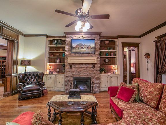 Exclusively Marketed by Simon Shingleton, 405 House & Home at Keller Williams Realty Elite. Call 405-633-3611 for a private showing. Lakefront Carrinton Lakes home w/ 3-D Theater & game room, Gated Porte-Cochere entrance to motor-court & more. Open living/kitchen stunning and master retreat. All beds down w/ full baths. Study or optional 4th bed w/ walk-in closet. Tmber lined Man Cave w/ fireplace off the great room. Built for entertaining a crowd! Fine woodwork/finishes & design in every room. Neighborhood Clubhouse, Pool, Lakes & Walking Trails. Storm shelter.Keller Williams Luxury Homes