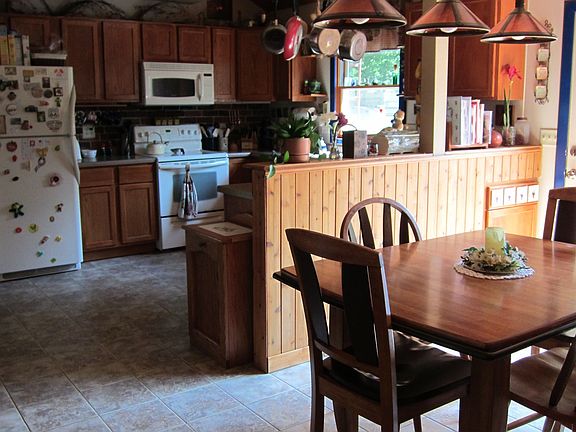 Heated by radiant hot water heat and new 98% efficiency water boiler installed in 2009. Uses natural gas heating. New efficient power vent 30 gallon hot water heater installed in 2011. House was roofed in 2008. New siding was installed in 2007. Spacious deck overlooking the backyard. Kitchen updated in 2004 with ceramic tile, oak cabinets, and new appliances. Most windows in the house have been replaced. New pressure tank, water pump, and water softener.