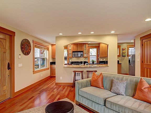 Gorgeous Modern Craftsman townhouse in perfect location. Features include; cherry hardwoods, Fir trim and doors, vintage feel fireplace, custom cabinets and slab granite. The open great room is an entertainer's dream. Upper level is a huge master suite with built ins and spa bath. 2 additional bedrooms, bath and media area with direct access to the patio and garden are down. Quiet front unit, sharing only one wall in desirable gated complex. 1 off street parking and high efficiency hydro-heat. Water, sewer, garbage, 1 parking is included in the rent.