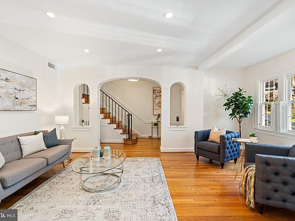 Located on a picturesque block in Foxhall Village and set back from the street, this handsome 1927 Tudor Revival residence is in turnkey condition. The four-level home offers a gracious open floor plan and abundant natural light in every room. Defining features include gleaming hardwood floors, a gas fireplace, crown moldings, built-in shelving, and a serene sunroom for year-round entertaining. The spacious kitchen provides stainless steel appliances, granite countertops, a breakfast bar for extra seating, and substantial cabinet space. Upstairs, the primary bedroom includes an updated en-suite bathroom with a large glass shower. The top level of this expansive home provides a sizable bedroom or family room with a full bathroom, significant storage space, and skylights. The home also features a full in-law suite with a separate laundry room, kitchen, and exterior access. Professional landscaping, a fully-fenced backyard, and off-street parking complete the offering. 4428 Greenwich Parkway NW is located in tranquil Foxhall Village, a unique residential enclave offering the best of both worlds: a lushly landscaped and friendly community situated a comfortable walk from Georgetown and a short drive from all Northwest Washington provides.