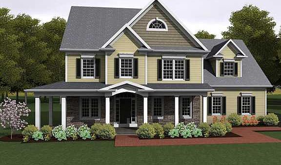 The 'Saratoga' offers four bedrooms with a bonus room as well as an open first floor and a separate study with its own entrance for anyone who works out of the house. With a beautiful wrap around porch and a great front elevation, this floorplan is sure to be the gem in any area