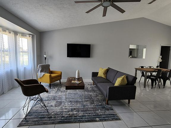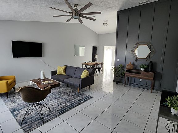 Introducing an entire unit remodel, professionally decorated and fully furnished with modern style in the picturesque Sun N' Lake community of Sebring. This 3 bedroom and 2 bathroom house with a garage and driveway is only 8 minutes walking distance from AdventHealth Sebring. The property is a few minutes' driving distance from all major restaurants, shopping centers, hospitals, entertainment, Downtown, and Sebring International Raceway. It is also close to the community pool, park, and gym. The home has 4 smart TVs with Roku streaming services with live channels (no cable), an electronic keypad door lock system, a desk, and an on-site washer & dryer for your convenience and enjoyment. Utilities are not included. It does include trash collection and Sun N Lake district fees. $150 - One-time cleaning fee $150 - One-time non-refundable pet fee per pet $30 - monthly rent per pet Taxes - 7.5% if 6 months rented by Florida state and Highlands County.