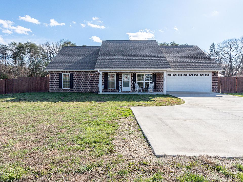 One level rancher w/cathedral ceilings, fenced in yard, covered front & back porches. Updated kitchen w/granite countertops, extra room w/closet for office or hobby room - trey ceiling in oversized main bedroom. Laundry room allows for side by side or stackable machines. In back woods, beautiful tree house. *Curtains on home do not convey. *Security system to remain & convey. Square footage per tax records, buyer to verify.