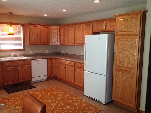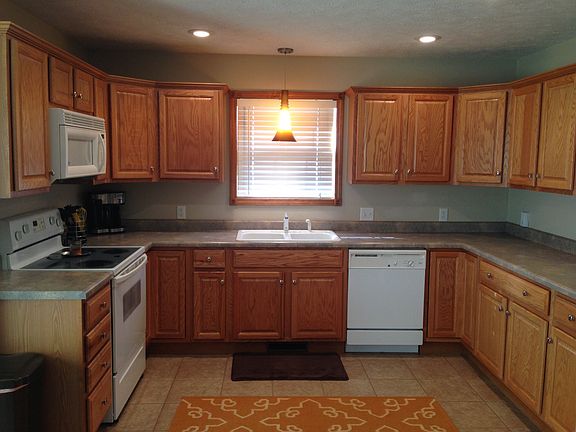 This House Has Everything You'd Need and It's Virtually Maintenance Free! Bedrooms (3) (w/walk-in closets; 2 closets in MB; split bedroom plan) Bathrooms (2) (walk-in shower and 2 sinks in MB) Spacious living room (w/vaulted ceiling; exposed wood beams) Formal dining room Oversized combo kitchen/dining area Whirlpool appliances (smooth top stove; microwave; dishwasher; disposal) Stained oak kitchen cabinets (w/2 turntables; ample cabinet space) Separate laundry room (w/2 cabinets) Custom-fit 2'' wood-slat blinds (in every window) Ceramic tiling (kitchen; bathrooms; front hallway; entry way) Wood flooring (living rooms) Frieze carpet (all bedrooms) Very well-insulated w/ efficient central HVAC system Gas fireplace (w/finished wood mantel) Thermal paned windows which tilt forward for easy cleaning Ceiling fans (3) Attic fan (2 speeds w/timer) Attached three (3) car garage (w/auto door openers) Convenient pull down stairway to attic (offers ample storage space) Covered front porch