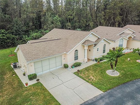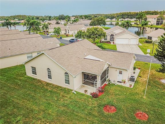 This house is looking for it's forever family! 2 bedroom, 2 bath, 2 car garage home has a wonderful floor plan and backs up to preserve. Master bedroom is large with a walk-in closet and ensuite bath. Master bath has a double vanity with tub and separate shower. Bedroom 1 also has a walk-in closet and entrance to hall bath from bedroom. All appliances including the washer and dryer stay. Newer laminate throughout the living areas and bedrooms. New roof in 2017. New exterior paint in the last 2 years. Millpond Lakes estate has a nice clubhouse along with two pools.