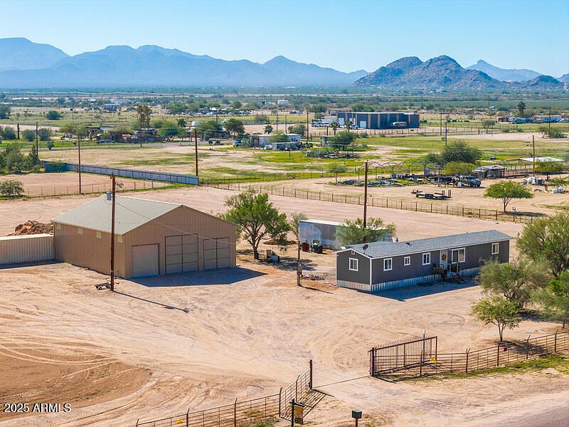 Enjoy the beautiful mountain views in this 2br, 2ba 924 sq ft Remodel manufactured home. Kitchen consists of spacious cabinets, appliances and opens up to the great room. Home has Dual Pane windows, ceiling fans throughout, 2 mini AC splits and a Regular AC, Washer Dryer and Refrigerator included Fenced 4 Acres of land is fenced with an electric gate opener. Amazing 3,000 Sq Ft Steel Workshop w/ 220 power throughout, 2 large air compressors, 2 car lifts, Electric lift for attic storage, 2 additional storage shipping containers connected in the back of the shop 300 sq. ft each.