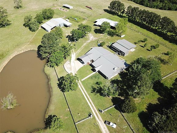 STUNNING DESTINATION in SE OKLAHOMA! DON'T MISS OUT ON THIS CUSTOM BUILT LOG HOME w/AN IMPRESSIVE GATED ENTRANCE. SPACIOUS HOME HAS 3 BEDROOMS/2.5 BATHS, OPEN LIVING, DINING & KITCHEN. HARDWOOD FLOORS, STONE FIREPLACE, INDOOR HEATED 10' SALTWATER POOL. HIS & HERS OUTDOOR KITCHENS w/COVERED DINING & OUTDOOR SHOWER. HUGE STORM SHELTER, 1600' RV CARPORT w/HOOKUPS, 1152' HORSE BARN w/432' COV'D PARKING, 1440' GENERAL PURPOSE w/960' SHED. SEVERAL PONDS & a 4+ac PRIVATE LAKE. PANORAMIC VIEWS! MUCH, MUCH MORE!