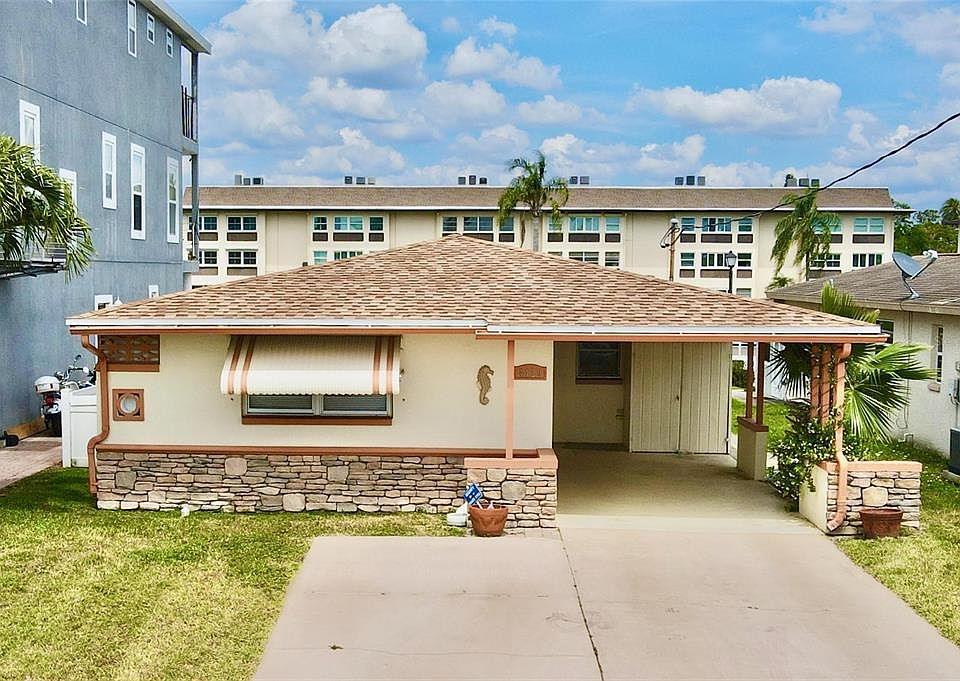 Waterfront living! Bring your boat and experience Florida living at its finest in the highly desirable waterfront community of Gulf Harbors! This quaint 2-bedroom, 2 bath home features an open concept living area with travertine floors throughout. Bonus room with a closet could be used as a home office or converted to a 3rd bedroom. Enjoy the beautiful sunsets in the large, enclosed Florida room overlooking the water. Carport offers covered parking for 1 car with an oversized driveway supporting parking for potentially 3 additional spaces. Dock offers direct access to the Gulf of Mexico via a deep-water canal with power source available. Optional LOW HOA membership and private community beach access (with additional optional membership) available. Don’t miss your opportunity to own a piece of Florida paradise!