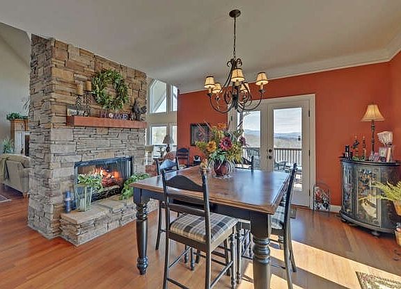 This Craftsman style home SCREAMS WELCOME HOME when entering. Your eye goes straight to the incredible views of the NC & GA mountains and Lake Chatuge & THEN to the incredible home & its space, windows, fireplace, and floors. When entering, you will see that this home has been loved & enjoyed. A see-through fireplace with gas logs sits between the dining & living room. Extra large kitchen has room for all the cooks. Great sized pantry, granite countertops, stainless steel appliances including a warming drawer & garbage disposal. Main floor living w/laundry room, leg master suite with walk out to deck and fireplace. Upstairs has two bedrooms with their own baths and walk in closets. Unfin basement is even more living space when finished. Meadow Brooke boasts of clubhouse, pool, and tennis/pickle ball court. Comes completely furnished.