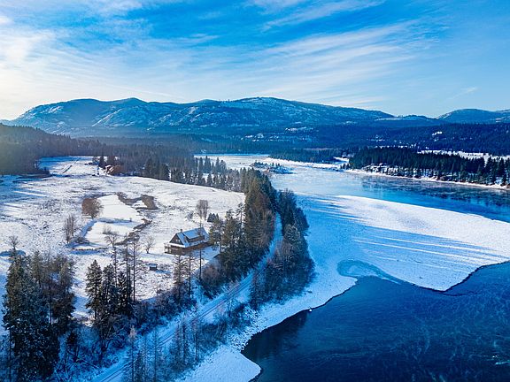 This beautiful 150 +/- acre property boasts three residences as well as a 2,200 ft paved airstrip. The custom 5,200 sq ft lodge has enormous vaulted ceilings, custom fireplace, 2 bedrooms, 2 non conforming bedrooms, 3.5 bathrooms and a sauna. With the wrap around deck it allows you to view the wildlife around the spring fed waterfall cascading into the pond or slip down to the 1/2 mile worth of river frontage for a swim or fish in Deadman's cove! The 40x60 hanger also has 2,400 sg ft of living space above, 4 bed/2 bath with beautiful views off of the deck. The third residence is the ranch manager cabin, it is a 3 bed/1 bath. This property is about 5 miles from Canada, 15 miles from Red Mountain ski resort and about 2 hours from Spokane, makes this the perfect get away or corporate retreat!