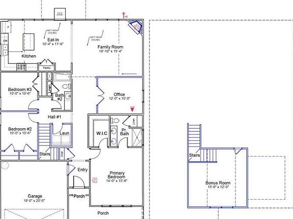 The Dorchester is a one and a half story home featuring a rocking chair front porch, three bedrooms, two full baths plus a spacious home office and bonus room above the two-car garage. The first-floor primary bedroom has a five foot walk-in shower, large linen closet and walk-in closet. Vaulted ceilings and beautiful Luxury Vinyl Plank floors throughout main living areas. The eat-in area has lots of windows and a sliding door leading to a covered patio. The kitchen includes an island with bar seating, double door pantry, white shaker cabinets, granite countertops and stainless appliances. Enter the large home office through French doors for privacy. Upstairs is a spacious 15.8x12 bonus room and walk-in attic access. Parsons Mill Farm includes a community pool, open greenspace, sidewalks and streetlights.