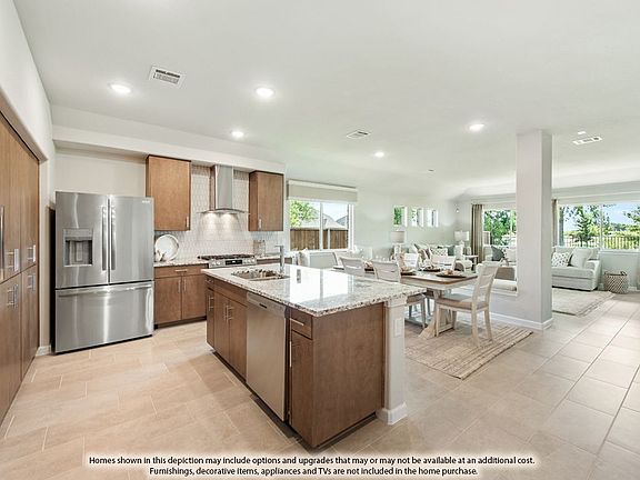 The Redbud plan by Bloomfield features 4 large bedrooms and contemporary design elements.. Open & airy combined living, dining, and kitchen with plenty of natural light throughout common areas. The kitchen is a stunner and made for gathering with a large center island perfect for barstools, flat-panel cabinetry with pulls, SS appliances, and a matching Glass Vent Hood. The Primary Suite is tucked into the back corner with windows looking out to the backyard and a polished ensuite! Visit Bloomfield at Hulen Trails to explore all this home has to offer.