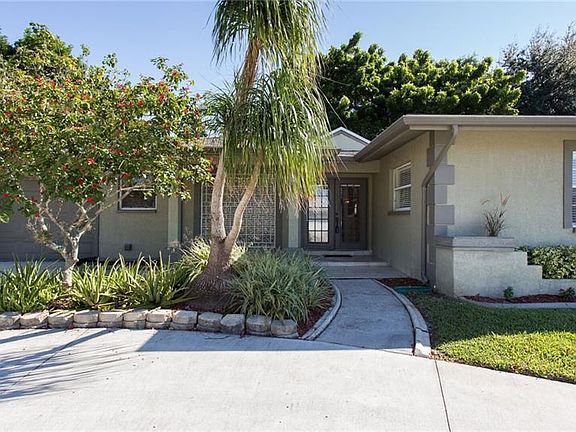 Charming, peaceful, updated cottage style home, reminiscent of those you might see in Olde Naples or downtown Sarasota. Pull up on the circular driveway to beautiful plants & a French double door tiled entry. Inside you'll find bamboo floors in main rooms with tile in kitchen & baths. Kitchen was updated several years ago with wood cabinets & granite counters, plus stainless appliances & a POT FILLER! Flex room off of living room could be dining area or sun room. Den could actually be 3rd bedroom as it has closet, but it also has French door entry and sliders to beautiful backyard. Both bathrooms have been completely updated, with master bath completed this past year. Guest bath has jetted tub/shower combo & dual sinks. Master has lovely shower with frameless doors & pretty gray tones. A/C replaced in 2018 & roof in 2015! Very lush landscaping with super private, fenced, shaded backyard with pergola & recently added stone patio under the huge shade tree. Mango, avocado, & papaya add to the tropical feel! Extra storage shed in back, too! Easy peasy access to downtown Cape Coral for restaurants, festivals, shopping & worship, plus only a few minutes across bridge to Fort Myers!