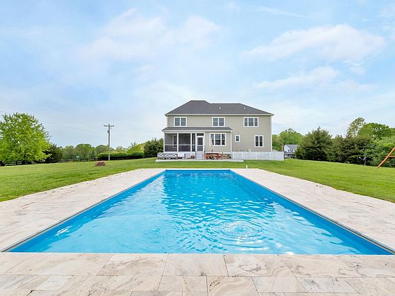 This stunning 5 BR home sits on a prime corner lot and offers expansive views of both sunrises and sunsets, open pasture, and mountains, creating a picturesque setting that can be enjoyed from inside or outside. The back yard features a beautiful salt-water swimming pool with large play ledge, safety ledge around entire pool, and automatic in-ground cover, perfect for easy maintenance and exceptional safety. Inside, the open concept layout creates a warm and inviting atmosphere. The chef's kitchen is a highlight, complete with high-end appliances, ample counter space, and plenty of storage. The screened porch with a double-sided fireplace provides a cozy space for relaxing. The home's great layout ensures that all family members have ample space and privacy. The large, bright basement space offers endless possibilities for additional living areas or recreation, with a sound-proofed home theater room, and flex room that can serve as an office or additional bedroom. With a view of the pool and backyard from the main living areas, this home is perfect for those who love to spend time outdoors. The backyard offers a great space for outdoor entertaining, with plenty of room for seating. Easy access to both 29N and Barracks Rd/Garth.