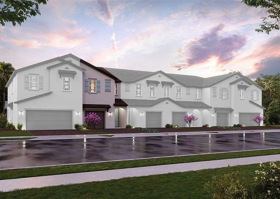 READY NOW! This Energy Star Certified home has 3-bedrooms, 2.5-baths, with covered lanai, located on a homesite with no rear neighbors. Kitchen is open to the great room & dining area and has 42" white cabinets with crown molding, granite countertops, stainless Whirlpool appliances, and walk-in pantry. 18" Ceramic tile flooring adorns the main areas. All bedrooms and laundry located upstairs. Primary suite boasts a dual sink vanity, enlarged glass shower with separate tub, privacy lavatory, and a walk-in closet. Located in a growing area of Narcoossee and minutes away from Lake Nona's shopping, dining and Medical City. Only 30 minutes from Disney attractions and Orlando International Airport. The Towns at Creekside offers residents a luxurious community pool with cabana, playground and walking trails.** Images are of model home or rendering, are used for illustrative purposes only and will differ from the actual home**