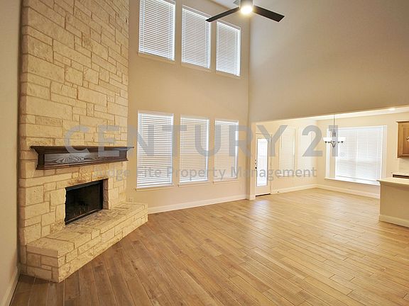 Step into a world where rustic charm and modern luxury effortlessly intertwine. This stunning, two-story 4/2.5/2 residence blends the classic comfort of Modern Farmhouse design with the enduring beauty of natural stone accents, creating a home that is both inviting and exquisitely sophisticated. The main living area is bathed in natural light, anchored by a gorgeous stone fireplace. A separate second-floor living area or gameroom offers flexible space for entertainment, a home gym, or a great home office. The spacious kitchen is a chef's dream, flowing seamlessly into the breakfast area. It features sleek, quartz countertops, contemporary cabinetry, walk-in pantry, and an expansive island perfect for casual meals and gathering with friends. Unwind in the tranquil primary bedroom, which offers a secluded main floor sanctuary. The luxurious, spa-like primary bath features a separate soaking tub and a spacious walk-in showerthe perfect start or end to any day. Step out to the fenced backyard with covered patio, offering the perfect space for outdoor entertaining or relaxing. Nestled in an established neighborhood with a park, playground, and walking trails, great for your active lifestyle not to mention easy access to schools, shopping and dining. This is more than just a house; it's a refined lifestyle waiting for you! Owner must approve all pets.