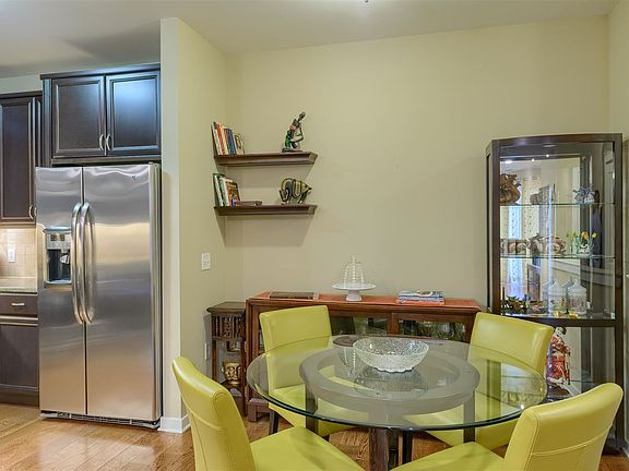 This home is a must-see! A rare 2 bedroom, 2 bathroom home in the premier building of one Jersey City's most desirable neighborhoods! Crescent Court is known for it's superior K Hovnanian construction, it's rich espresso wood kitchens, and it's sun drenched homes, and it's convenient location, just steps from boutiques, cafes, PATH trains, culture and nightlife. The full chef's kitchen has stainless steel appliances, granite countertops, designer cabinets, tons of cabinet space, and a luxurious breakfast bar! The entire living space is gleaming hardwood floors, 10ft ceilings, and open concept. Large bedrooms include full master-suite with walk-in closet and double vanity en-suite, and a second bathroom with a full soaking tub. One car covered parking, bike storage, and common courtyard as well!