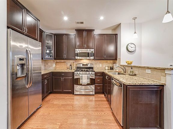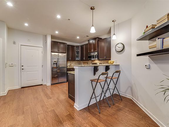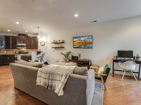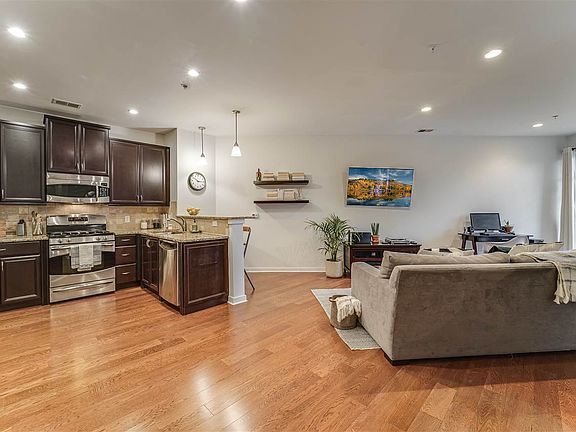 Massive 1-bedroom condo in an elevator building in Downtown Jersey City! Newer style building (2010) offering deeded/covered parking spot, common courtyard & close proximity to lots of restaurants/shops. Sprawl out in this open-concept layout with 10 ft. ceilings as well as enjoy southern views from your balcony. Graciously sized bedroom, bathroom & laundry area. Kitchen has espresso cabinets, granite countertops and stainless steel appliances. Luxuries such as a walk-in closet and double vanity sink in bathroom allows for room to grow. Plenty of space to entertain or work from home
