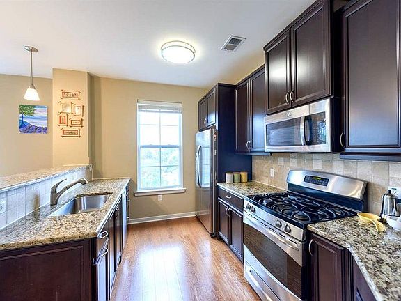 1,269 sq. ft., top floor 2 bed/2 bath condo located in Downtown Jersey City's Village Neighborhood in desirable Crescent Court, close to great restaurants and cafes, schools, day care and parks. This is a corner unit with ample natural light and windows in every room including kitchen. The unit features a large open living and dining area with gorgeous chef's kitchen. Stainless GE appliances, granite counters, breakfast bar, and 42" espresso stained cabinets. Well appointed master bedroom with walk-in closet and en-suite full bath with double sink vanity and separate shower. Second bedroom with ample closet space including custom built in storage. Second full bath with espresso stained vanity and tub. SUV-size INDOOR PARKING, juliet balcony, high ceilings, hardwood floors in living areas, additional storage in garage, bike storage and full size W/ D in unit. It is minutes away from Grove Street PATH train to NYC and Newark, and Rte 78. Mary Benson and Hamilton Parks nearby. Enjoy the landscaped community courtyard, welcoming lobby, dual elevators, and on-site covered garage parking. Tenant responsible for gas, electric, water. No smoking. Additional monthly pet fee