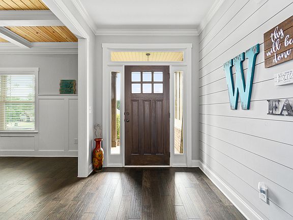 Gorgeous craftsman style home w/farmhouse details -- HELLO shiplap, sliding barn door, exposed beams, board & batten, & more! Situated on a large lot, this home offers 4BR/2.5BA, including large vaulted master & tiled mstr bath w/granite vanity, garden tub, tiled shower, & walk-in closet! Foyer entrance opens to dining rm w/stunning coffered ceiling! Open living concept offers a large family rm w/ fplc that flows into beautiful kitchen w/ HUGE island, granite counters, tile backslash, & big pantry! Spacious secondary bdrms + granite/tile in all baths! Laundry rm w/utility sink + flex rm that is perfect for ofc! Details thruout - hrdwds,rounded corners, crown molding,etc! Covered back patio w/planked ceiling, fplc, & extended patio!