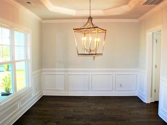 The Hemingway with 3rd floor Rec Room & full bath is loaded with impressive features such as archways, oak tread stairs, engineered wood floors, coffered & trey ceilings, wainscoting, & beautiful trim. The dream kitchen features an abundance of cabinets & quartzite counters, SS appl's, pantry, large center island, and sink positioned below a triple window with backyard views. The breakfast room opens to the spacious LR with large archway, coffered ceiling, & gas FP. Entertain with ease in your formal DR highlighted with wainscoting & trey ceiling, or on the oversized covered rear porch. Upstairs is the tranquil master suite with spa like bath & enormous WIC, 3 additional BRs, bath with double vanity, & convenient upstairs laundry room.