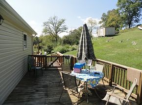 Great home with wrap around decking. Covered front porch to sit and look at the mountains from. This house has 3 BR 2 BA. Has great built ins in dining area. Open floor plan. This one want last long. Call today for your private showing. Home is being sold "AS IS". Is on permanent foundation. Buyer and buyers agent to verify all information.