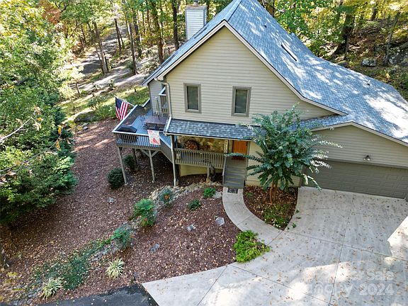 Hidden gem inside the gate at Rumbling Bald. Beautiful contemporary home nestled in a serene park like setting with lovely landscaping and plenty of native rockwork. Relax next to the small creek while soaking in the natural setting. Enjoy winter views of surrounding mountains during 5 - 6 months of the year. Open and bright floor plan with cathedral ceilings and an abundance of windows to allow for natural sunlight. All the primary living area on the main level with master bedroom, laundry/mud room, kitchen, and great room along with easy access to the attached double garage. High quality construction by Bittle Construction including a fully encapsulated/insulated crawl space. Enjoy access to a private beach on Lake Lure, Marina, second private lake access, Championship Golf courses, Hiking trails, biking & walking trails, Wellness and Fitness Center, tennis courts/a mini-golf course, restaurants, & 3 pools! This home comes fully furnished including the Golf Cart and two kayaks!