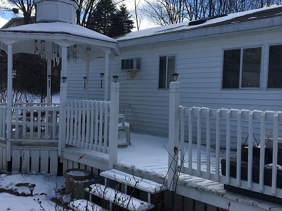 Roomy mobile home with garage, large living room features a tray ceiling, kitchen features updated cabinets and a built-in booth style table, formal dining room with ceiling fan, Attic storage space off of entry that goes the length of the garage. Lots of closet space. Enjoy summer evenings relaxing on the gazebo.