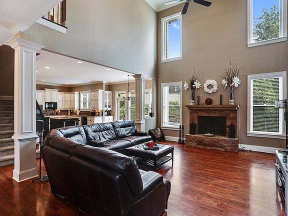 Spacious home in the heart of Downtown Roswell! Rocking chair front porch; Formal LR/Office w/French doors; Formal DR; Two story great room w/gas fireplace; Open kitchen w/antiqued cab, granite, butlers pantry, island, desk; Guest suite on main; Hardwood floors on main; Master w/sitting area & spa like bath; Deck; Full basement ready to finish; New exterior paint.