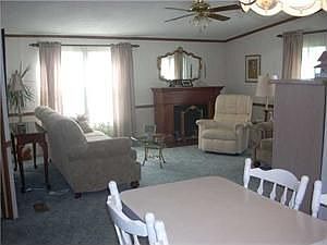 Lovely manufactured home in move-in condition! Front enters into pretty laundry room from there into large family rm w/electric fireplace and French doors to spacious master suite and double closets master bath w/separate toilet area & garden tub. Open kitchen layout with breakfast bar & pass through to formal dining rm, large formal living rm w/built-ins. 2 more bdrms & a 2nd full bath on opposite side. Roof 2012. Furnace 2013. Shed for storage & double parking pad. A must see!