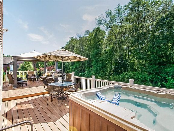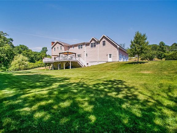 Meticulously Cared for Expanded Cape! This fabulous, must-see, custom home is meant for entertaining! A chef's dream kitchen with custom tile backsplash, granite countertops, custom 1" thick "soft close" door cabinets, and high-end appliances opens up to the first-floor family room, centered around the real masonry fireplace with a gas insert. Through the French doors, a luxurious, oversized Trex deck, with a jacuzzi, and ample space for outdoor entertainment with country views! The beautiful craftsmanship carries through the home to the office with coffered ceilings, and the formal dining room, both full of natural light from the front of the house, that brightens the foyer. The second floor offers a master bedroom, with a custom bathroom, with granite countertops, and a large walk-in closet; as well as three bedrooms, and a recently finished 540 Sq. Ft. bonus space over the garage, fit for whatever your needs may be; whether it be an additional bedroom, home-gym, or entertainment room. The three-car garage, is perfect for the car enthusiast, filled with cabinetry and countertops for storage of tools, etc. Large walkout basement with sliders, can be easily finished as an in-law apartment. Solar panels are purchased, electric bill doesn't exceed $9/month!! With hardwood and tile floors, quality moldings, and custom trim throughout, in a private, quiet neighborhood with quick access to shopping and main highways, this Litchfield County home will take your breath away!
