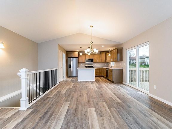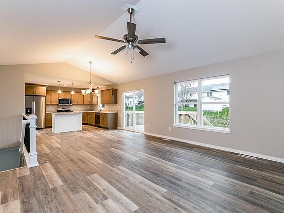 Chamber Builders 2022 new ranch home with 1,487 finished square feet (Hickory floor plan), 3 bedrooms, 2 full bathrooms, and 22' x 24' attached garage. Maple buckskin Kemper cabinetry, white island, white trim and paneled doors, granite kitchen counters, designer backsplash, main floor laundry, luxury vinyl plank floors, vaulted great room and recessed can lighting. Entertaining is made easy with a 12' x 12' deck off the great room and kitchen area, and an expandable lower level. Builder warranty, energy efficient constructed, passive radon system, floor plan and specifications available. Additional lots and floor plans are available. USDA approved.