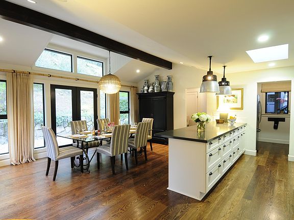 Available fully furnished and month to month. Lovely 3 bedroom (+ small office space), 2 bath home that is sophisticatedly furnished with collected antiques, original art, and custom pillows and draperies. Abundant windows and skylights bring in the natural light to make the rooms feel open and airy, and every room has a large sliding glass door that connects it to the outdoor patios and gardens. The living, kitchen and dining are open to form one large great room with a kitchen perfect for cooking with its Viking range, large pantry, and island for prep. The master bedroom has a queen bed and comfortable sitting area. There is a corner wall of glass that looks out over the gardens, forest and vineyard beyond. The light and bright ensuite master bath has a glass enclosed walk-in shower, double sinks, and large mirrors. The 2nd bedroom has a queen size bed and sliding door that opens to the front deck and gardens. The 3rd bedroom, currently an office, also has a large sliding door that opens to the garden. If needed, this room can be converted back to a bedroom with a single bed. Across the hall is a second bathroom with a tub/shower. Outside the house are 3 separate, large seating areas and a small room that can be another office or place to put a peloton or treadmill. The attached carport has covered parking for 1 car with additional parking on property. The wifi allows for easy streaming and video calls. Monthly rent includes weekly gardening, satelite TV, internet, water, garbage, gas, and electric. There is a one time $500 cleaning fee and $350/mo utility fee. Twice monthly housekeeping at guests expense is required. Available month to month.