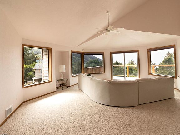 Wonderful ocean, bay and river views from this well built 4 bedroom 3 bath Yachats home. Sitting just up the street from town. A rare Yachats find. Private master suite with gorgeous views & sky lite in bath. Good sized kitchen, lots of storage and wonderful separation of space. Sit underneath the covered deck or in the sun, watch sunsets, the ebb and flow of the bay, eagles and migrating whales. Large attached 2 car garage with work area, built in vacuum system & extra storage. Full basement with 2 bedrooms,1 bath. 2nd downstairs bedroom/bonus room was used for quilting. Located with thought, this property is well maintained, protected from the cool northern summer winds and has wonderful warming sun all year long. Updating needed ~ could be fun to make it your own.Worth it for the view
