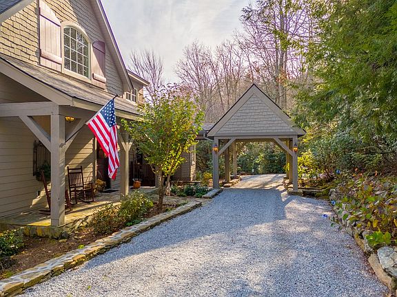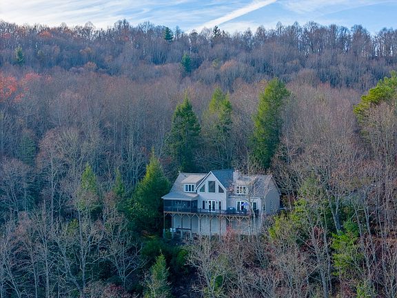 Rare opportunity to own this mountain top estate. Long range views and a waterfall, yes, this home has it! Nestled in the woods overlooking the Tuckasegee River Valley, you will find this remarkable home blends the rustic mountain experience with the refinements and luxury you would expect. The entertainment areas of the home flow out onto the covered porch and open deck making relaxed weekends with friends and family effortless. The primary bedroom boast a large rock fireplace and breathtaking views. Walk straight out of the bedroom to the dining area on the deck to enjoy your morning coffee while watching the sunrise. Need a little more room for company? The log guest house is perfect. The rustic charm of this cabin is undeniable. Custom touches from the wash tub sink to the vintage barn wood accents throughout the cabin is sure to impress. Even in the garage you will find way more than just a garage. Behind the two car bays is a large woodworking shop. Upstairs is a loft that is perfect for an office or craft room. Have a green thumb? Plenty of raised bed gardens and even a greenhouse to keep you occupied. Don't wait to make an appointment to view this home.