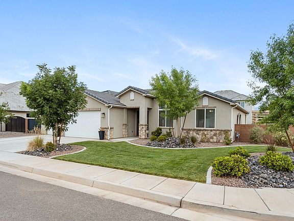 Come enjoy this beautiful home in the highly sought-after Steeplechase subdivision, nestled within Washington Fields. This clean upgraded 4-bedroom, 2-bathroom home is a true gem. nestled on a corner lot in a quiet neighborhood. Upon stepping inside, you'll immediately notice the care and attention to detail that has gone into maintaining and enhancing this home. The spacious layout boasts four well-appointed bedrooms, providing ample space for family members and guests alike. The two bathrooms have been tastefully designed. The 4th bedroom is currently being used as a office and gives you both options. The open-concept design seamlessly connects the kitchen to the cozy living area, creating the perfect space for gatherings and quality time with loved ones. Step out back and enjoy the covered patio and awesome hot tub. Home is located close to the newer Crimson cliffs schools.