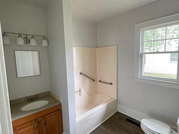 A 951 sq ft private home on the southside of Winston Salem. Two bedrooms, one bath, living room, dining room, kitchen, and laundry. There are closets in both bedrooms. The living room and dining room have carpet and recessed lighting. There is vinyl flooring in other rooms. Plenty of natural light. Great proximity to transit - Hwy 52 and Interstate 40 are within a three bocks. There is one dedicated parking spot and plenty of parking in the area. A washer/dryer is located in-house, newly painted. Large front porch and small back porch. About a 5 minute drive to downtown. Wheelchair ramp to front porch. No section 8 available. Available to show by appointment. Renter responsible for water/electric/gas. No smoking indoors. 12 month lease. Security deposit and first month's rent due upon signing. One dedicated parking spot included.