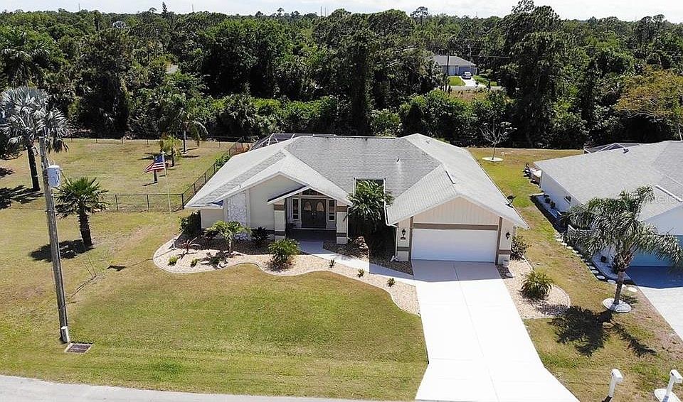 ** PLEASE ENJOY THE 3D INTERACTIVE VIRTUAL TOUR ASSOCIATED WITH THIS LISTING Welcome home to Burnt Store Meadows - Built strong in 1992, this home is all but new! With 3-bedrooms, and 2 full baths, this Florida-style pool home has been nicely renovated, and it shows! With an inviting great room design, this residence has a split bedroom plan with a spacious dining area and lovely open kitchen, which sports granite counters, raised panel wood cabinetry and new appliances. The home's new flooring includes tasteful ceramic tile in all but the newly carpeted bedrooms. The great room, kitchen, master suite and guest wing all have access to the screened pool enclosure. This outdoor oasis has ample under-roof space and features paver-stone decking and a preserve view. The pool itself has a new pebble-tech surface and pool heater. With a well-maintained tropical landscaping scheme, the home's backyard also includes a fenced area. The oversized two-car attached garage sports a built-in workbench and, the home's laundry facilities are also located here, but they could be relocated to the intended 13'x 6' room just inside. Situated in the heart of western Charlotte County, just south of historic downtown Punta Gorda, Burnt Store Meadows is a green space-friendly community consisting of newer homes on larger home sites. As to location, this home is only 2.5 miles from Interstate 75, 5 miles south of historic downtown Punta Gorda, 33 miles from SW Florida Int'l. Airport at Ft. Myers (RSW). This may just be the one!