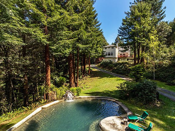This beautiful home is back on the market due to bad timing with SIP. Quiet Greenwood Heights living on a beautifully private 5 acre parcel with majestic Redwoods, bountiful sunlight, and mature gardens. This 2700 square foot open concept home lives modern and comfortably where nature is enjoyed from over-sized windows throughout. Oak floors, antique slate, a wood burning fireplace, a wood burning stove, 3 en-suite bedrooms, and lots of storage add to the ease of rural living. Enjoy abundant spring water, a 16' x 24' workshop with power and water, gardens and fruit trees, decks, paths and a large Koi pond. All of this plus a custom 25,000 gallon in-ground pool with cascading waterfall. This is a graciously developed property with style and comfort. The 2020 vegetable garden is in!