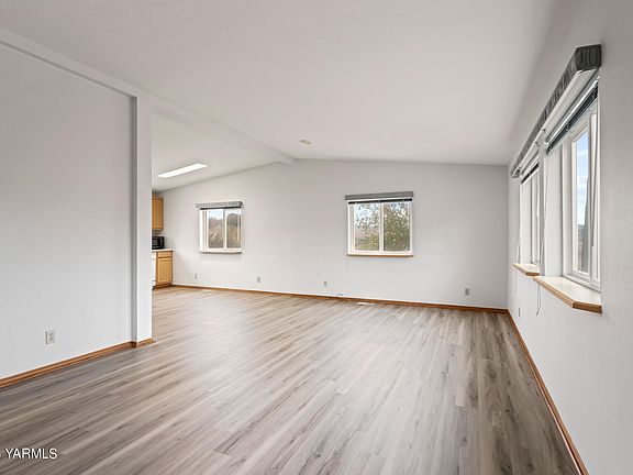 Situated in a peaceful and serene rural setting, this property is ahaven for nature enthusiasts. This charming 972 square foot 2 bedroom, 1 bath manufactured home has freshly painted interior and new flooring. It is perched atop a picturesque hill, offers panoramic views and an opportunity for peaceful country living. With 12.59 Shares of Yakima Tieton irrigation and ample acreage, this property is a versatile canvas for your farming dreams or a perfect haven for your beloved animals. May have the ability to add a second home and use this as an ADU (Accessory Dwelling Unit)Buyer would need to be confirm with the county. This has an assumable loan for a qualified buyer.