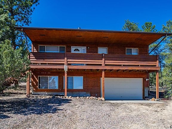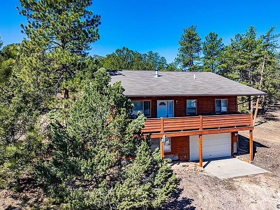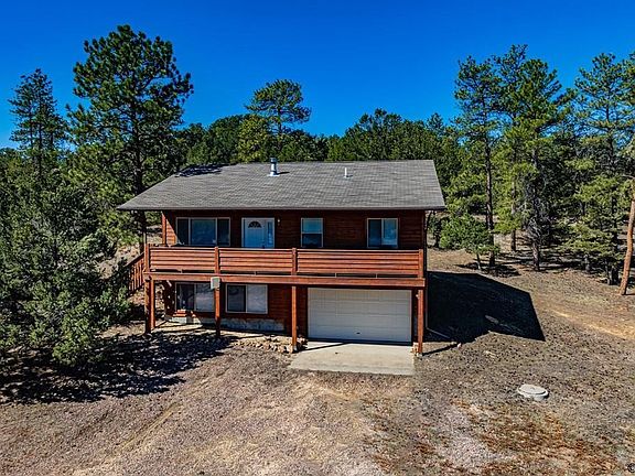 Welcome to your summer retreat nestled among the towering ponderosa trees on a spacious 5.2-acre corner lot sitting at apx 7500' in beautiful Colorado. Imagine waking up to the tranquil sound of nature, with the sun rising over the majestic mountains and the scent of pine filling the air. As evening the cool evening falls, marvel at the breathtaking display of stars against the dark sky from your covered front deck. This well-kept home offers the perfect blend of comfort and convenience, featuring 2 bedrooms and 2 baths, ensuring plenty of space for you and your guests to relax and unwind. With two separate living areas, there's ample room for entertaining or simply enjoying quiet moments with loved ones. The property boasts not only an attached garage for your vehicles but also a generous 1600 square foot metal building complete with electric service. Whether you dream of parking your RV and other outdoor toys indoors for easy access to outdoor adventures or envision a hobby farm with horses and chickens, this versatile space offers endless possibilities. Surrounded by lush meadows and mostly usable land, this charming home provides a serene escape from the hustle and bustle of everyday life. With its picturesque setting and abundance of amenities, this is more than just a house – it's a haven where memories are made and cherished for years to come. Don't miss your chance to own this truly special property in the heart of Colorado's stunning countryside.