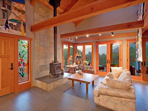- Living: Cathedral/Vault, Large, Ceiling Fan, View, French Doors, Pellet Stove, Skylight/Solar Tube
