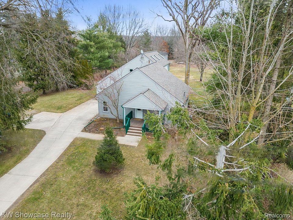 RARE FIND!! Huge (4.91 acre) beautifully wooded lot backs to (305 acre) Elizabeth Lake Woods Park. This wonderful home includes an attached Garage, Pole Barn (24x40) and fenced area for your pets. A quaint covered porch and attractive glass entry door open to a cozy Great Room with gas stove. The Kitchen features ceramic backsplash, pantry and all appliances, spacious Dining Room includes a door-wall to the deck. The home's first floor includes 2 Bedrooms each with a ceiling fan & light, a Library/Bedroom, 2 full Baths, Flex Room and Laundry Closet with washer/dryer. Separated for privacy, the second floor consists of a large Owner's Suite with skylights, walk-in closet, door-wall leading to a balcony and private Bath with luxury jet tub.