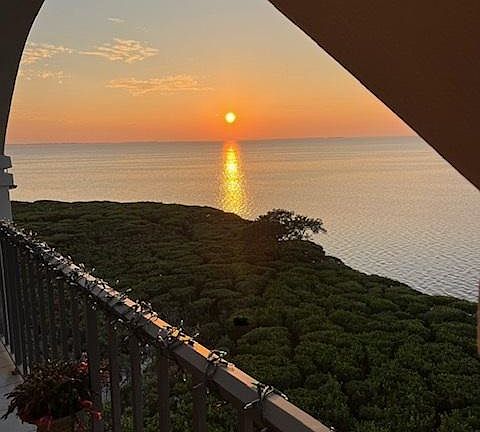 Available June 1, 2026. Resort Living with North, West and South panoramic Gulf views! Watch the dolphins, the boats, and outstanding birdwatching while also enjoying Florida's beautiful sunsets from the comfort of your own private wrap around corner balcony condo unit. With Gulf front views from every window in this 1280 square foot two ensuite condo unit, this makes for the perfect setting for your short-term Florida rental needs. Wrap-around window sliders in the main living/dining area and open kitchen with views of the Gulf, this maintenance-free, 4th floor (Top floor), corner unit provides you with an abundance of natural light, surrounded by views of Florida's water nature. Located in Tarpon Springs, Florida, this maintenance-free waterfront condo comes with 24/7 gate attended security with resort style amenities. This unit requires a minimum of a 90-day stay.