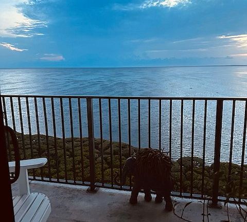 Stranded bamboo wood floors in this comfortably furnished unit with wrap-around window sliders overlooking the Gulf.